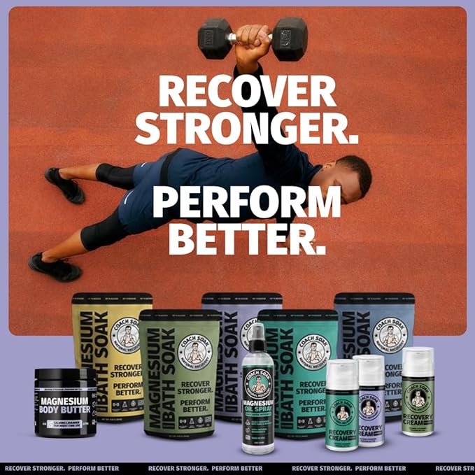 Coach Soak Recovery Bath Soak & Nighttime Magnesium Body Butter Bundle - Calming Lavender Scent - 3lb Bath Salts & 8oz Body Cream with Essential Oils, Magnesium & Shea Butter