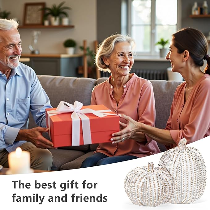 - COLORFUL: Shop with confidence knowing that we stand behind our products. The fall pumpkins decorations are colored in white sliver body and gold stem with gold-lined frame, adding a touch of autumn charm and warmth to any space.