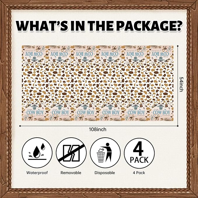 - 4-Pack Western Baby Shower Tablecloth Set: Each package includes 4 durable cowboy-themed tablecloths - perfect for covering banquet tables or creating coordinated western party zones!