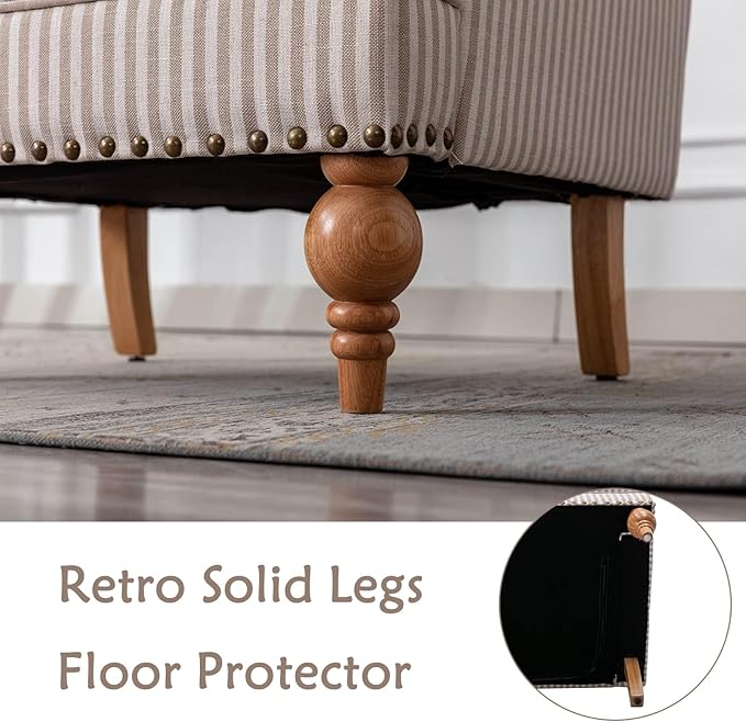 chairus Linen Accent Chair for Living Room Upholstered Mid Century Modern Single Sofa Chair with Solid Wood Legs Comfy Reading Chair Armchair for Bedroom/Office Room/Recption/Lounge, Khaki Stripe