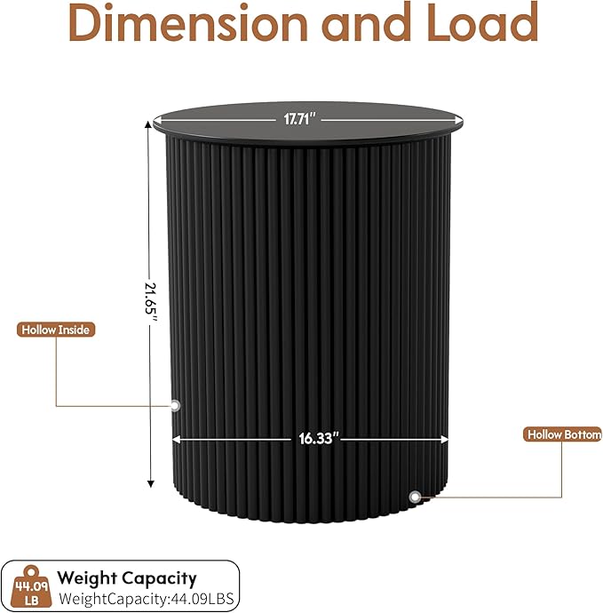 - Mid Century Night Stand: The fluted round end table showcases a sculptural cylindrical silhouette and rich Rustic Walnut finish, blending classic mid-century charm with contemporary style. Its artful vertical fluting creates depth and visual interest, and the smooth, rounded top provides a refined surface for décor accents or a lamp, creating a stylish accent for your bedroom or living room.
