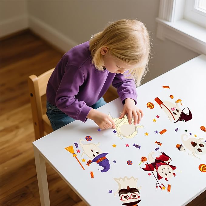 - High-quality material: Halloween stickers are made of high-quality PVC material, exquisite printing technology, bright colors. This cute Halloween stickers self-adhesive PVC, waterproof, reposable and reusable, which are fantastic Halloween decorations!