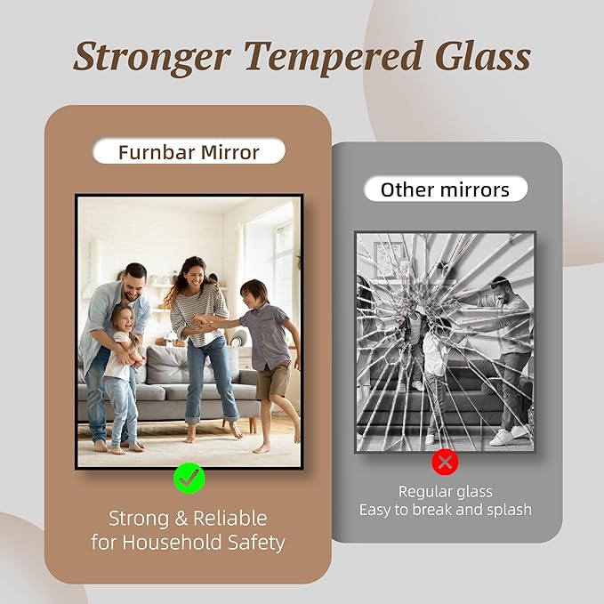 - High-Definition Clarity: The Furnbar wall-mounted bathroom mirror features upgraded HD glass that delivers clearer, distortion-free reflections, making it an ideal choice for your bathroom, vanity, or living room decor