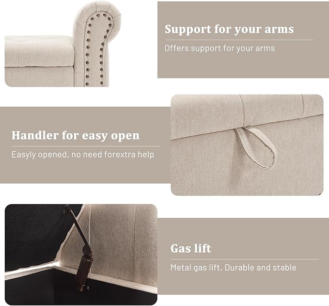 - ·Top-quality Planks&Sophisticated Mechanics: The ottoman bench frame made of multi-layer solid wood planks offers excellent breathability, durability, and support. The easy-lift and soft-close mechanism of the composite hinge and support arm structure ensures that the seat surface opens smoothly. It allows for easy and slow closure, providing a safe and effortless user experience.