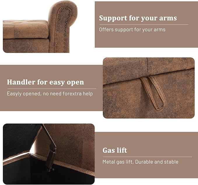 - ·Top-quality Planks&Sophisticated Mechanics: The ottoman bench frame made of multi-layer solid wood planks offers excellent breathability, durability, and support. The easy-lift and soft-close mechanism of the composite hinge and support arm structure ensures that the seat surface opens smoothly. It allows for easy and slow closure, providing a safe and effortless user experience.