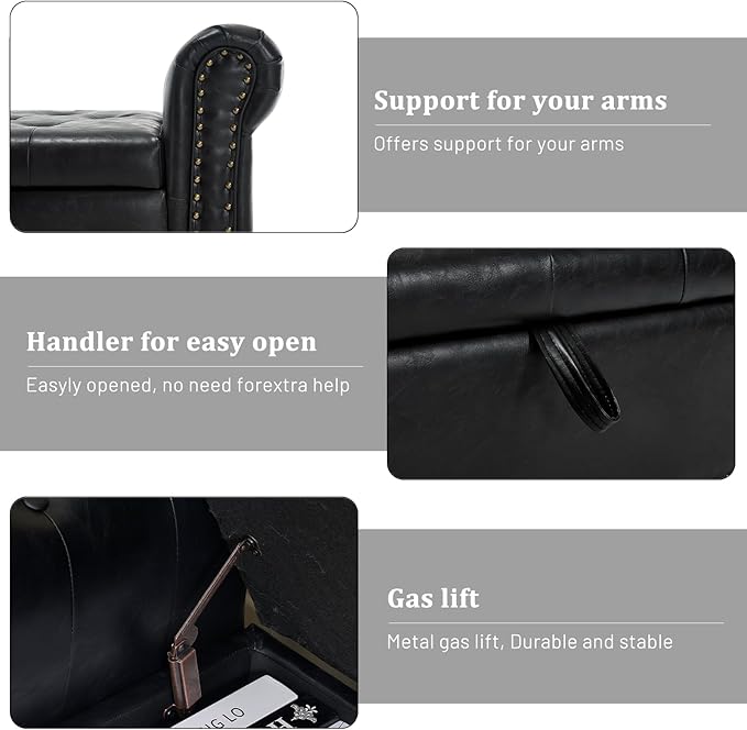 - ·Large Storage Space:This bedroom storage bench offers ample room to store blankets, toys, clothes, books, and more. The bench for end of bed helps you to keep everything organized. The four durable legs are crafted from selected solid wood for long-lasting use. The elegant black coating not only stabilizes the ottoman for bedroom but also safeguards the floor from scratches.