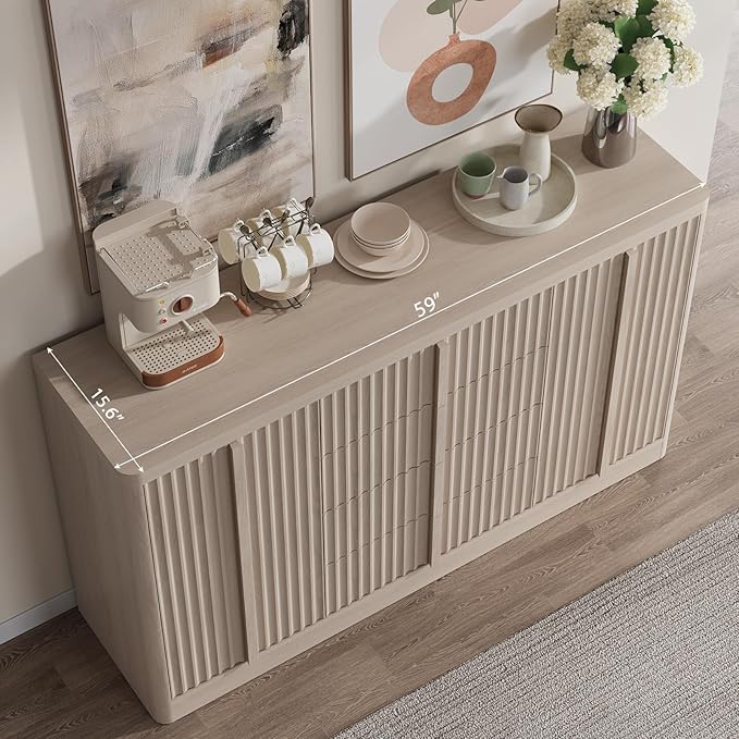 - 【Minimalist & Practical】This fluted buffet cabinet with drawers features elegant waveform panels and a curved profile, blending with farmhouse, mid-century, and modern décor. Stylish and functional, this fluted buffet cabinet enhances your entryway, living room, or hallway